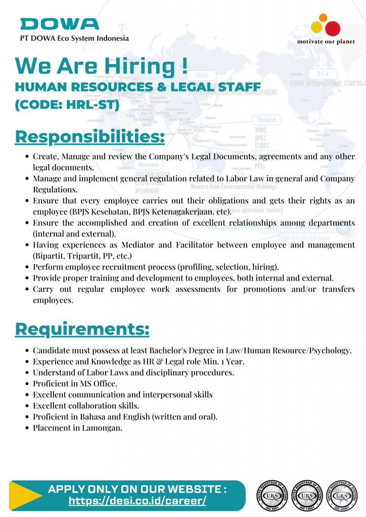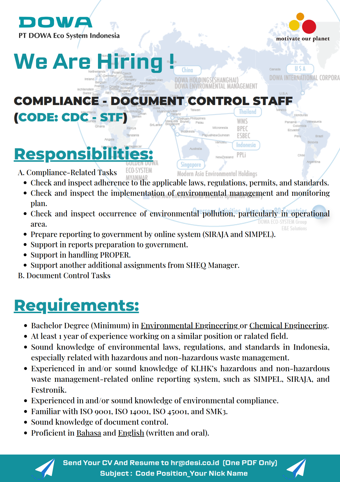 Learn more about our company Say hello to our friendly team! Come join us Technical Staff (Closed) View careers Compliance - Document Control Staff (Closed) View Careers Human Resources & Legal Staff (Open) View careers Sales Officer (Open) View Careers